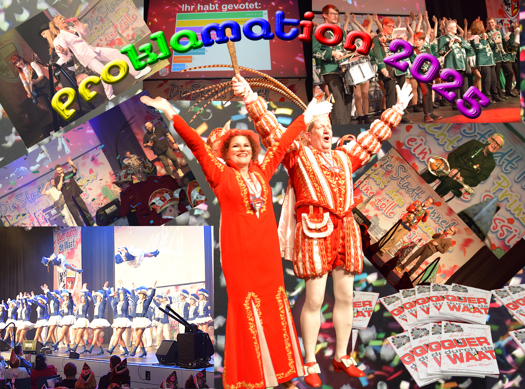 Als sich endlich die Türen öffneten, wurde auch das letzte Geheimnis gelüftet. Es gib kein Dreigestirn, wie beim letzten mal als wir das Prinzenpaar stellen durften. Es gibt wieder ein Prinzenpaar. Ein Prinzenpaar welches beim Voting auf dem Hennefer Stadtfest ziemlich abgeschlagen nur auf Platz 7 gehandelt wurde. Aber das Beste ist, es ist ein Prinzenpaar aus unseren Reihen. Es sind unser 2. Vorsitzender Uli Steinhauer und seine Frau Renate Becker – Steinhauer die in der Session 2025 / 2026 als Prinzenpaar der Stadt Hennef, als Prinz Uli I. und Prinzessin Renate I., das närrische Hennefer Volk regieren.